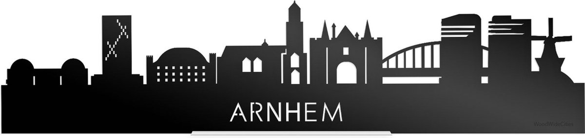 Breng de skyline van Arnhem stijlvol in huis met deze unieke wanddecoratie – strak uitgesneden in zwart acrylaat.