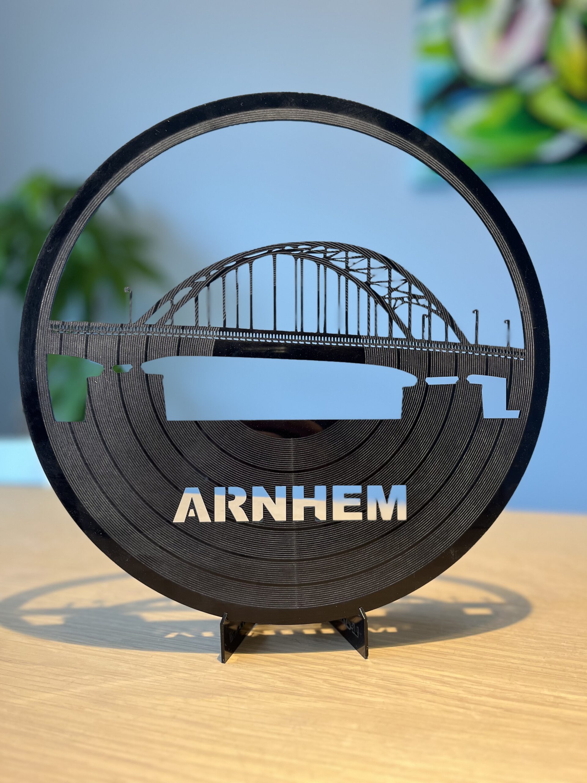 De tekst ‘ARNHEM’ – helder uitgesneden en mooi geïntegreerd in het ontwerp.