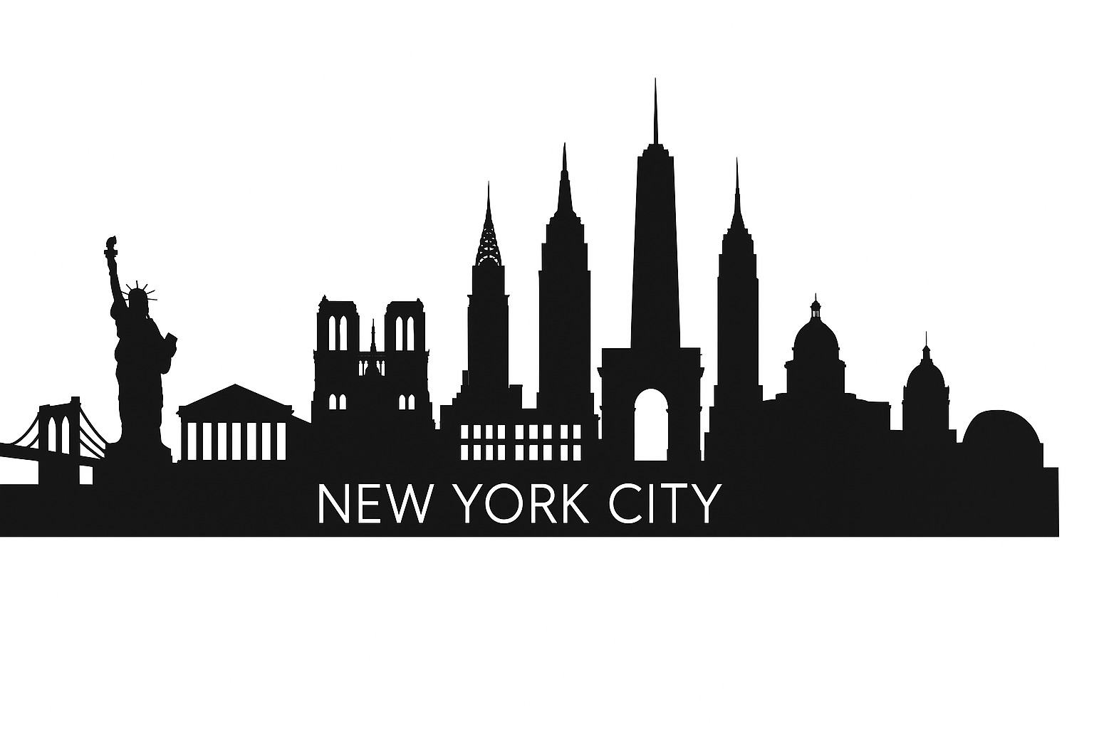 Deze kunstzinnige weergave vangt de bruisende energie en het herkenbare stadsbeeld van The Big Apple in één krachtig silhouet.